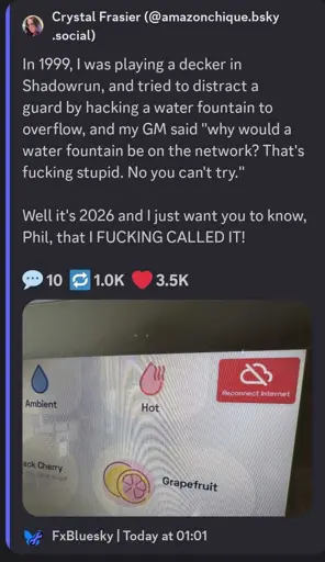 tgirlschierke@lemmy.blahaj.zoneEnglish · 5 days agoThe Water Fountain [Shadowrun]lemmy.blahaj.zoneimagemessage-square58linkfedilinkarrow-up1855