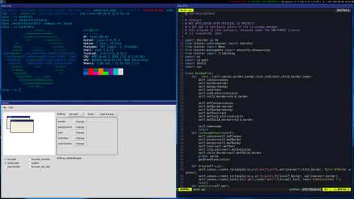 I still struggle with getting the colors right. Does any of yall have an advice about how to properly choose colors? The repo for the app is at: https://github.com/lasermtv07/i3colors The i3 theme is custom, the vim theme is sorbet and the alacritty theme is modified cyber_punk_neon.