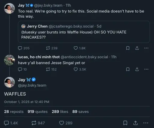 This sucks. Hopefully this will push ppl to sign up to mastadon or to other atproto instances and move away from the main bluesky acct.