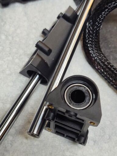 I picked this printer up with a bunch of filament for $60. The build plate was really loose so I took it apart and found that the bearings are loose within the plastic part. Not really sure what to do here. I might epoxy the bearings in place. I saw that there is a y axis linear rail upgrade for $40 but that seems like a waste of money.