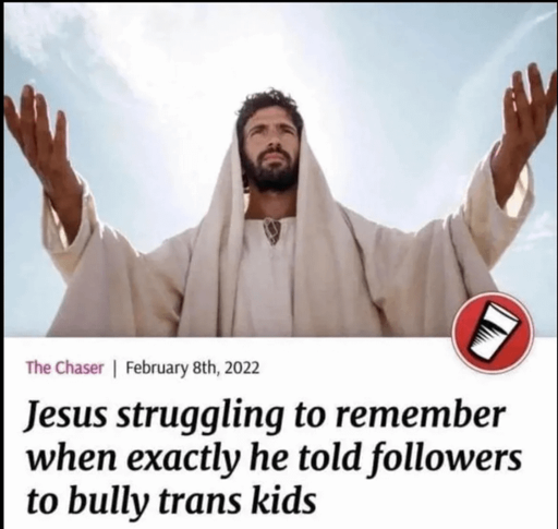 So as a trans person you’re allowed to… change your name and pronouns? I think that’s it, as far as the Bible goes.
