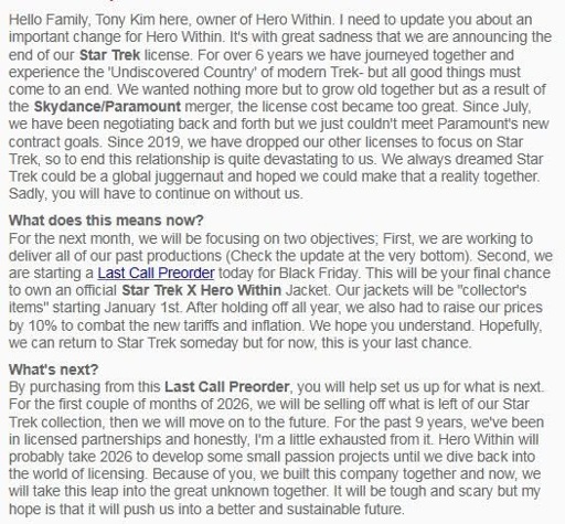 arrow-up110imageHero Within Announce End of Licensingstartrek.websitehopesdead@startrek.website to Star Trek Social Club@startrek.websiteEnglish · 9 hours agomessage-square1linkfedilinkfile-text