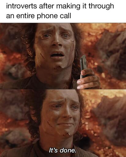 This isn’t an introvert thing though. I’m the champion of introversion and can make it through a phone call no problem. Don’t ask me to call someone I don’t know though. But my point is, this is some form of anxiety. It may be more prevalent in introverts, that’s probably why we can bond over it. But its not an introvert thing to be scared of phone calls, its something else.