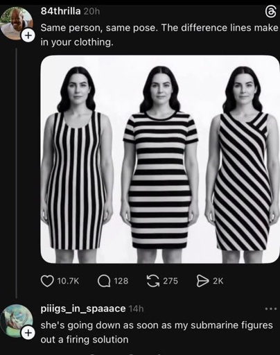 I thought everyone knew that stripes change your perception of something. In this case a lady.