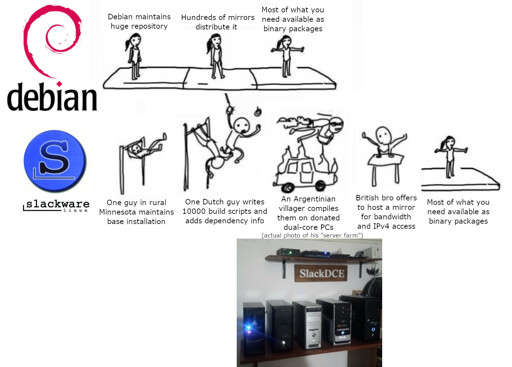 What are the names of the projects in the steps? Slackware itself I think is the minnie basement, but then I’m at a loss.
