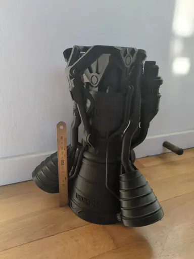 I had a lot of ASA to spare from a voron 2.4 project. I decided to use some of it printing the prusa rocket engine just for the fun of it, maxing out my printers volume with a height of 310mm. I printed it without any supports, and it does show some obvious issues in areas with large overhangs, but generally the printing quality is pretty good. It took 16h13m to print the entire thing and used a little under 400g of filament, 0.2mm layer height, 10% lightning infill, 2 walls.