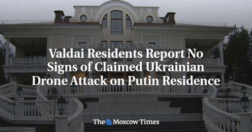 Residents of the town of Valdai in Russia’s Novgorod region said they neither heard nor saw signs of a large-scale drone attack overnight on Monday despite official claims that nearly 100 Ukrainian drones targeted President Vladimir Putin’s residence there.
