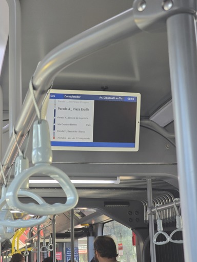 Hace años que había visto pantallas en las micros y siempre esperaba que tuvieran la ruta con los paraderos qué se vienen (algo que se hace en hartas partes del mundo).