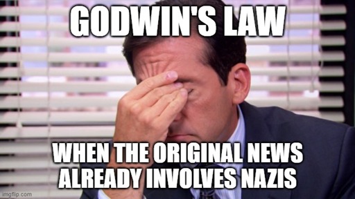 Godwin’s law (or Godwin’s rule), short for Godwin’s law of Nazi analogies,[1] is an Internet adage asserting: “As an online discussion grows longer, the probability of a comparison involving Nazis or Hitler approaches one.”