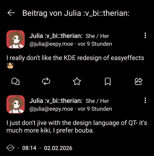 Btw. seeing some of the comments in here: is it the fate of all Linux shitposting forums to be filled with hardliners who really care what software you install on you Linux system? Let me use my GTK apps in peace. I don’t need opinions on UI cleanliness and density from people who don’t even use easyeffects, because my god, is it a mess currently.