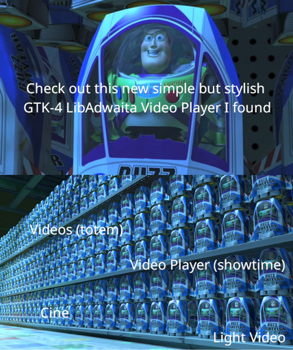 VegOwOtenks@lemmy.world to linuxmemes@lemmy.worldEnglish · 26 days agoYet Another Video Player With Less Controlslemmy.worldimagemessage-square38linkfedilinkarrow-up1291file-text