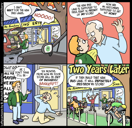 when business owners come out with shitty takes like this I suspect their business is dying anyway and a bike or bus lane isn’t going to change that. they’re simply angry boomers who don’t understand change.