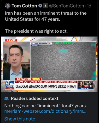 So what are you saying? Iran has been an imminent threat to the US for 3047 years? Damn Democrats never getting off their asses to get shit done. It was about time Trump handled it.