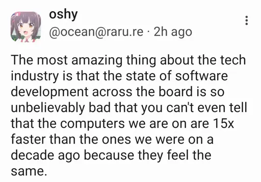 arrow-up11.78Kimagemight be a form of Jevons Paradoxlemmy.blahaj.zonenot_IO@lemmy.blahaj.zone to Programmer Humor@programming.devEnglish · 17 days agomessage-square291linkfedilinkfile-text