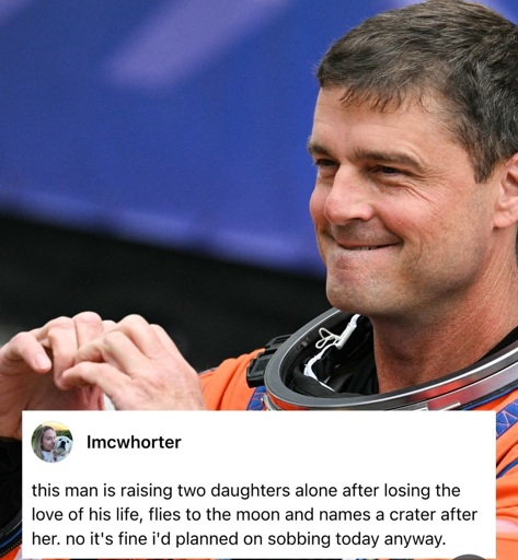 “Hey girls, I know mum died, but I’m going to risk my life flying a rocket to the moon so there’s a significant chance I won’t make it back and you two will have to figure shit out on your own. Bye, daddy’s gotta go, if I make it there I’ll name something after you or something. I left some cash on the table, don’t spend it all on pizza or meth, see ya! Well, maybe hahaha”