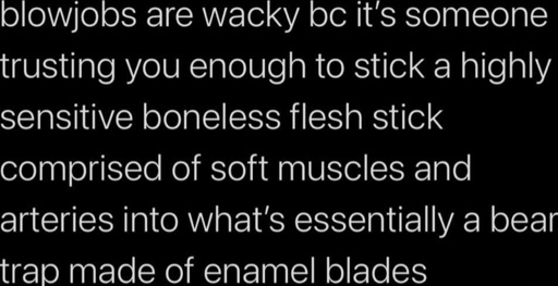 minus-squareCapuccinoCoretto@lemmy.worldlinkfedilinkarrow-up3·10 days agoGrandma, grandpa anyone really. They say “the fun isn’t in the face”. While true, with a good gummy, the fun really is IN the face.