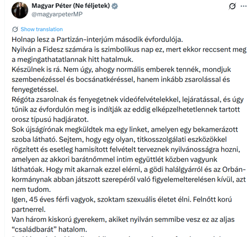 arrow-up123imageThe lead opposition candidate in Hungary's upcoming election, Peter Magyar, says a sextape of him is going to be released by the governmentplus-squarelemmy.worldOndore@lemmy.worldBanned to Europe@feddit.orgEnglish · edit-28 days agomessage-square5linkfedilink