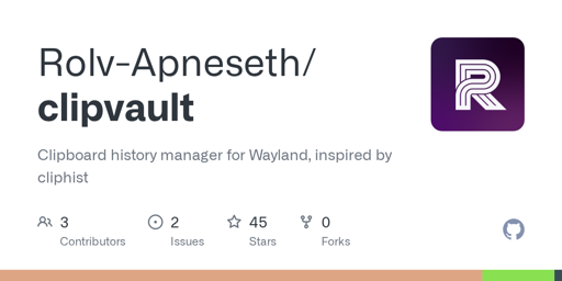 cm0002@no.lastname.nz to Linux@programming.dev · 16 days agoClipvault - Clipboard history manager for Waylandplus-squaregithub.comexternal-linkmessage-square0linkfedilinkarrow-up119