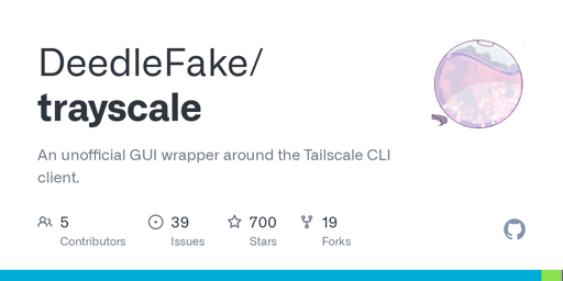 arrow-up10external-linkTrayscale, a nice little GUI for Tailscaleplus-squaregithub.commFat@lemdro.id to Linux@lemmy.mlEnglish · edit-22 年前message-square1linkfedilink